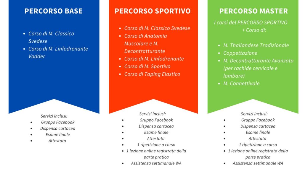 Potrai sceglire uno dei 3 percorsi riassunti qui sotto: